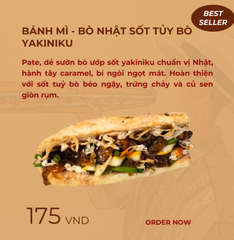 Pate, dẻ sườn bò ướp sốt yakiniku chuẩn vị Nhật, hành tây caramel, bí ngòi ngọt mát. Hoàn thiện với sốt tuỷ bò béo ngậy, trứng chảy và củ sen giòn rụm.